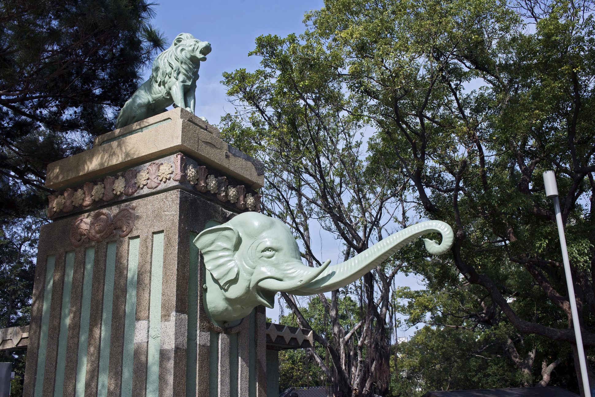 The story begins at the older entrance, guarded by two solemn, cast-iron statues—an elephant and a lion locked in eternal stillness. They stand framed by neoclassical pillars and delicate ornaments, blending European romance with colonial ambition. Modest in size, the gate nonetheless commands quiet authority. Designed in 1936 by Japanese architect Shige Morita (森田重), it has remained intact for decades and is now officially recognized as a historic structure. During the 2017 renovations, workers painstakingly scraped away thirteen layers of paint, eventually uncovering its original shade: a serene blue-gray, resonating deeply with the zoo’s colonial past.