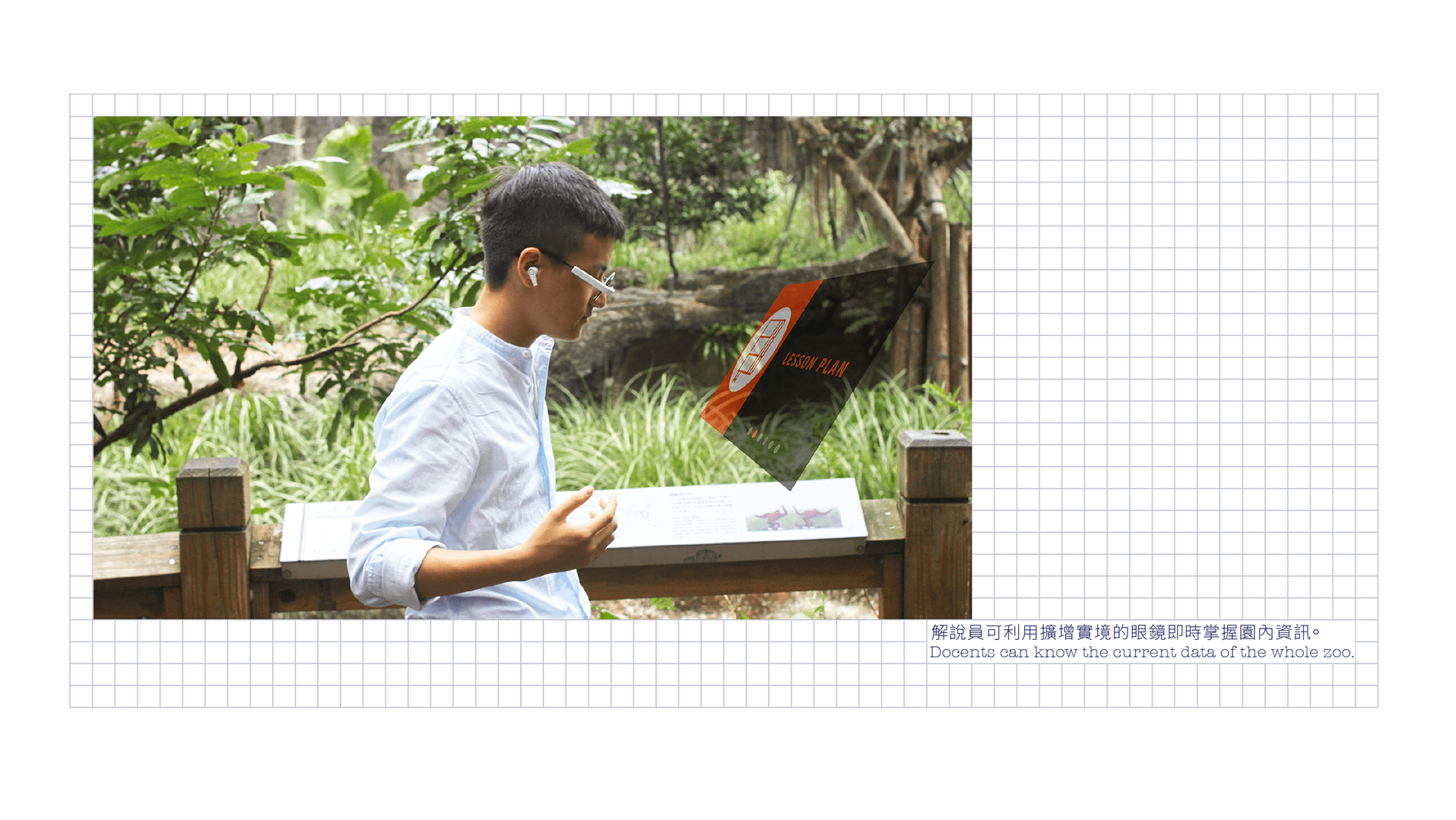 If we can combine interpretation with the latest AR technology, we can send information in "fun ways". Connecting visitors with zoos by enhancing the experience they have during interacting with interpretation, which is the most important task for zoo educators, to "change information into knowledge". Combining the interpretations with AR makes the information movable, interactive, and interesting. It can also show different content for different ages or native languages. In the future, people can wear glasses while visiting zoos.